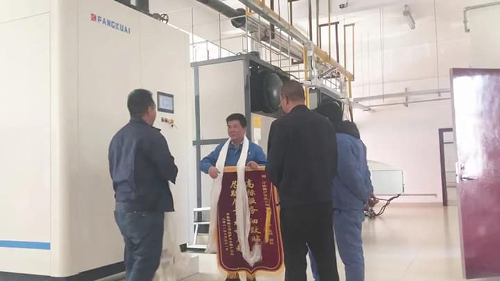 這20名司爐人員在現(xiàn)場認(rèn)真聽講,王鵬操著帶有些許口音的普通話為大家做了即興講解,受到了現(xiàn)場司爐人員的一致認(rèn)可。用戶工長為了表達(dá)感謝之意,特別制作了一面錦旗,并為現(xiàn)場的方快員工獻(xiàn)上了潔白的哈達(dá)。
