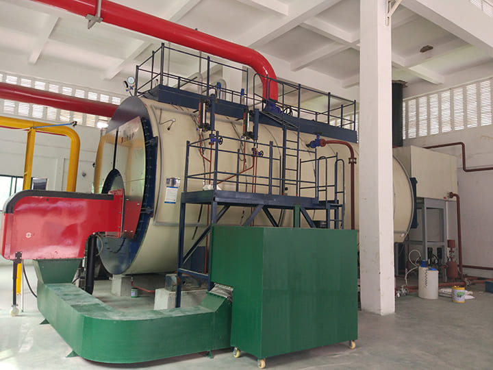 蒸汽作為該企業(yè)生產(chǎn)工藝中主要的生產(chǎn)介質(zhì)與載熱體,被廣泛應(yīng)用在原材料加熱脫水、設(shè)備預(yù)熱、水的加熱、產(chǎn)品硫化的各個方面??紤]到蒸汽在生產(chǎn)中的消耗成本所占比例較高,如何控制以最低的成本生產(chǎn)蒸汽、以最佳的效果使用蒸汽、以最科學的方法管理蒸汽非常重要。此次與方快鍋爐合作的是緬甸國的一家橡膠廠,方快鍋爐的技術(shù)工程師經(jīng)過縝密的計算得出,為其定制一臺出力為35噸燃氣蒸汽鍋爐(SZS25-2.5-Y.Q),可以完全滿足該企業(yè)的用汽需求。