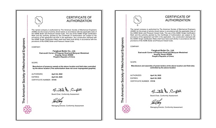ASME 是“美國機(jī)械工程師協(xié)會(huì)”的簡稱,主要致力于機(jī)械行業(yè)相關(guān)標(biāo)準(zhǔn)的制訂,是具有很高權(quán)威性和影響力的國際性學(xué)術(shù)組織。 ASME 標(biāo)準(zhǔn)也是世界上最早、最具權(quán)威性的鍋爐及壓力容器規(guī)范。 ASME 認(rèn)證是方快鍋爐走向國際市場的必由之路,為方快產(chǎn)品進(jìn)入國際市場提供一份含金量較高的“通行證”。