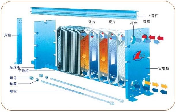 板式換熱器結(jié)垢堵塞的主要原因及其危害:板式換熱器在使用過程中,因?yàn)樗幚碓O(shè)備運(yùn)行不當(dāng),水質(zhì)控制不達(dá)標(biāo),將分歧格的軟化水注入供熱系統(tǒng)中,使水中的鈣、鎂、碳酸鹽遇熱后分解為碳酸鈣和氫氧化鎂沉淀物鉆結(jié)在換熱器的受熱面上,形成了堅(jiān)硬的水垢。因?yàn)樗傅膶?dǎo)熱機(jī)能差,造成了換熱器換熱效率的降低以及熱能的嚴(yán)峻鋪張,從而影響了供熱的效果,給供熱單位造成了嚴(yán)峻的負(fù)面影響。